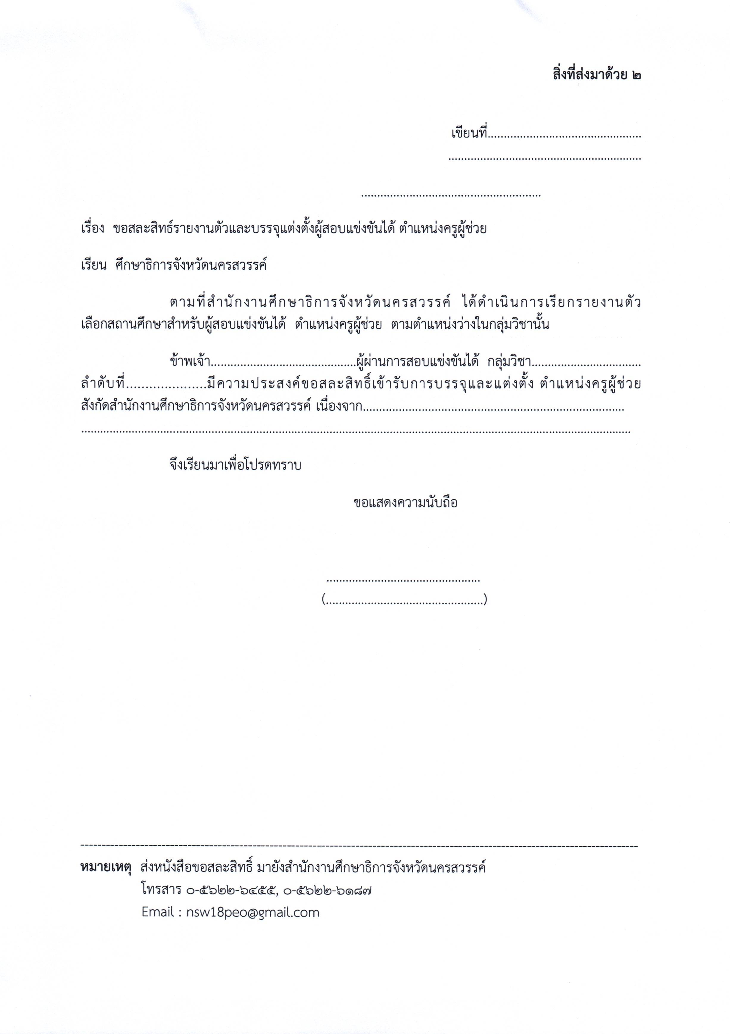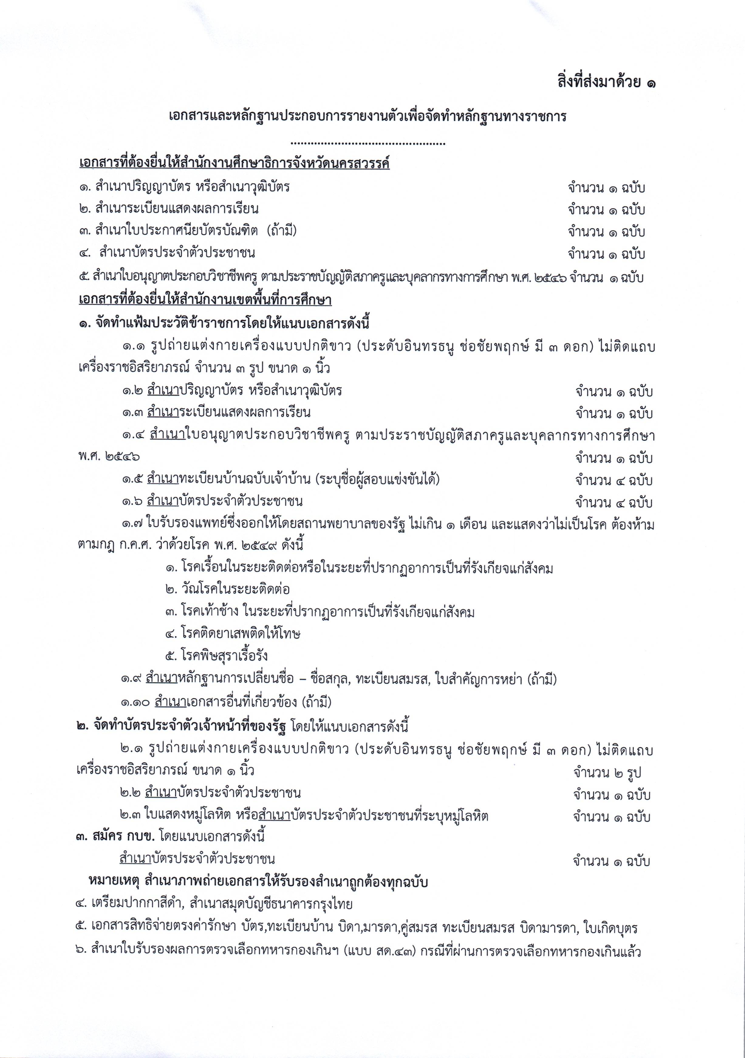 กศจ.นครสวรรค์ เรียกบรรจุและแต่งตั้งผู้สอบแข่งขันได้ ตำแหน่งครูผู้ช่วย จากบัญชี กศจ.น่าน, กศจ.ลพบุรี, กศจ.พิษณุโลก จำนวน 3 ราย ในวันพุธที่ 18 มกราคม 2566