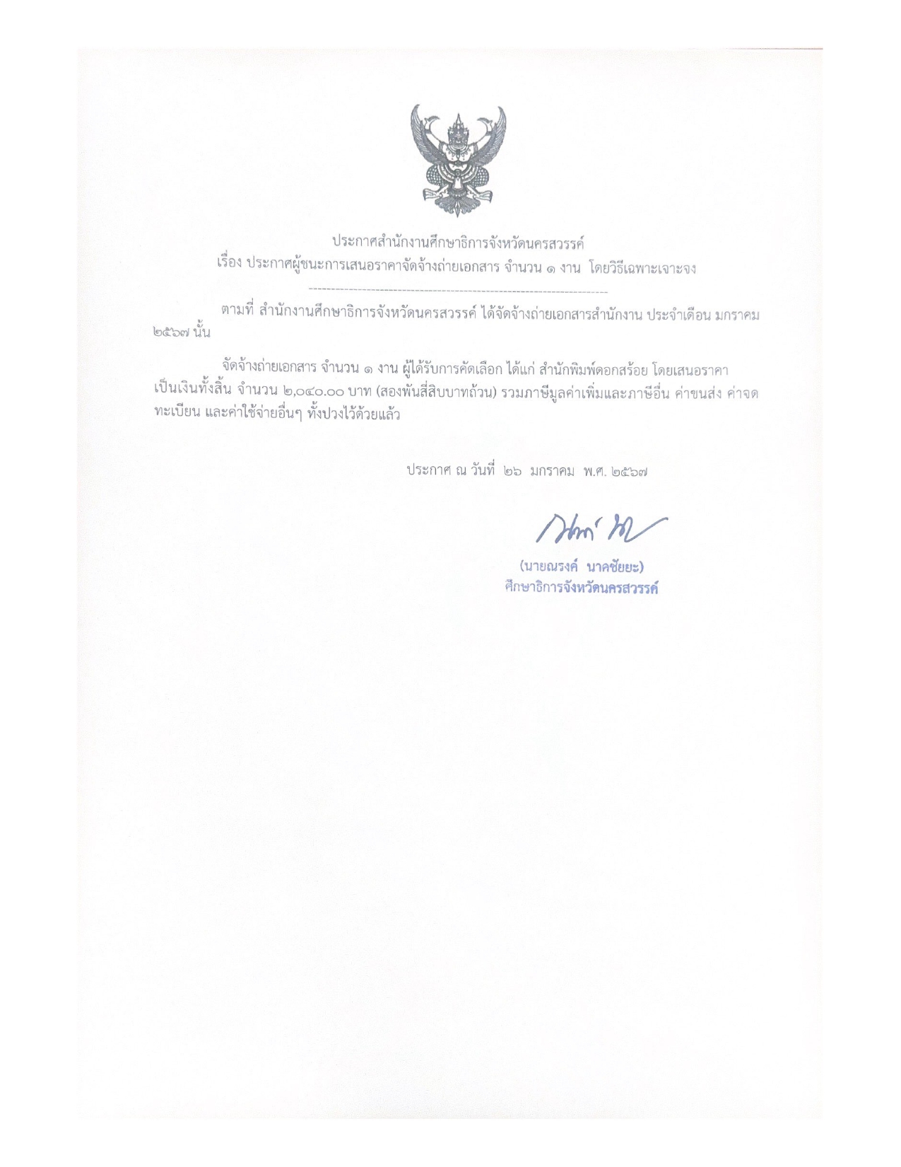 ความก้าวหน้าการจัดซื้อจัดจ้างหรือการจัดหาพัสดุ ปีงบประมาณ พ.ศ.2567 ดาวน์โหลดเอกสารด้านล่าง
