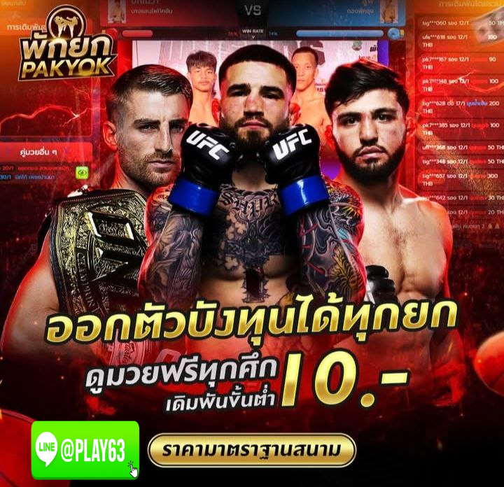 มวยออนไลน์อันดับ 1 เว็บมวยเด็ด เดิมพันมวยออนไลน์ มวยไทยออนไลน์ แทงมวยออนไลน์ มวยสดทุกวัน มวยไทยเด็ดๆ เว็บมวยครบวงจร มวยไทยวันนี้ แทงมวยมือถือ @PLAY63 กับการเดิมพันมวยแบบถูกกฎหมายที่ดีที่สุดในไทย แนะนำเว็บแทงมวยออนไลน์ @PLAY63 กับการเดิมพันมวยแบบถูกกฎหมายที่ดีที่สุดในไทย เว็บแทงมวยOne กับสุดยอดเว็บมวยที่มาแรงที่สุดในตอนนี้ มีกำไรเพิ่มขึ้น อย่างมากมายแน่นอน เว็บแทงมวยOne ที่เปิดให้แทงมวยวัน One Championship แบบสดๆ ครบทุกคู่ แทงได้ทุกคู่ ราคาเริ่มต้นที่ 10 บาทต่อคู่ ไม่ว่าคุณจะเป็นแฟนมวย แทงยกต่อยก เสมอ ไล่ลง ไม่คิดเงิน